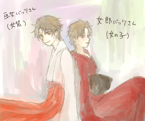 和物75サイドの巫女さんは20歳青年の女装。別に本人の趣味ってわけじゃないけど、特別な巫女さんなので何年も前からずっと巫女装束。