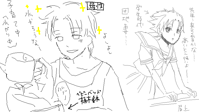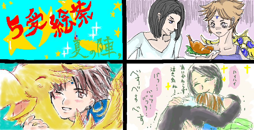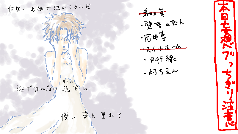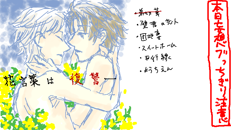 某ねぎさんが既に(というかいつも←いや本当ありがとうございます)サイトにログ上げてくださってるので、こちらでは基本的に私が単独の間にもそもそ描いてたものとかを中心に(といっても他の方の絵も出します。主催権限で勝手に上げちゃってすみません……!)レポというより日記的な感じで書こうかと~。